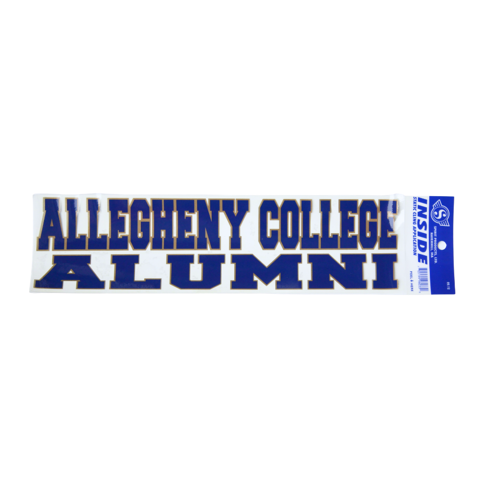 Static cling sticker with “Allegheny College Alumni” text.