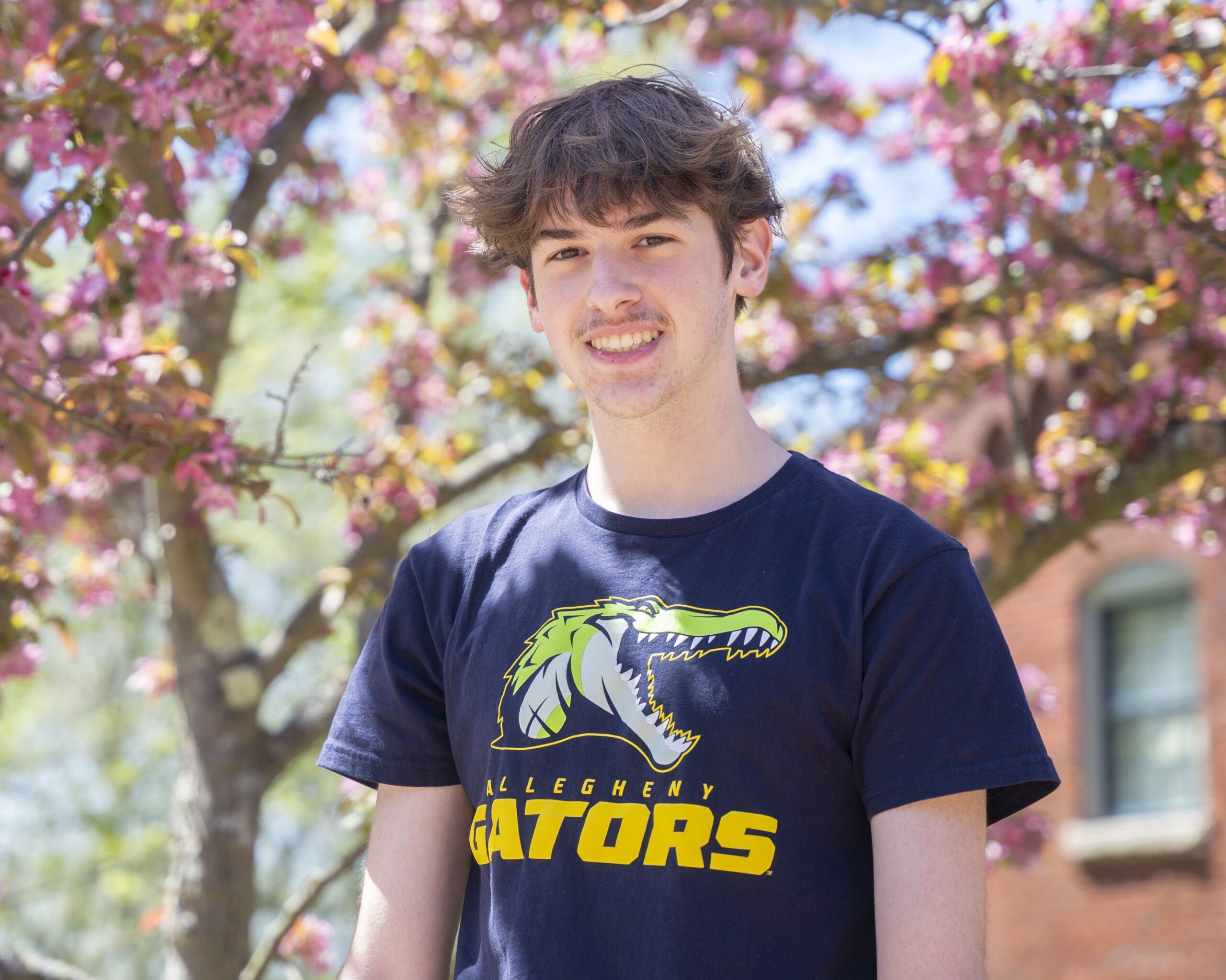 Navy t-shirt with large silkscreen imprint of Allegheny Gators logo.