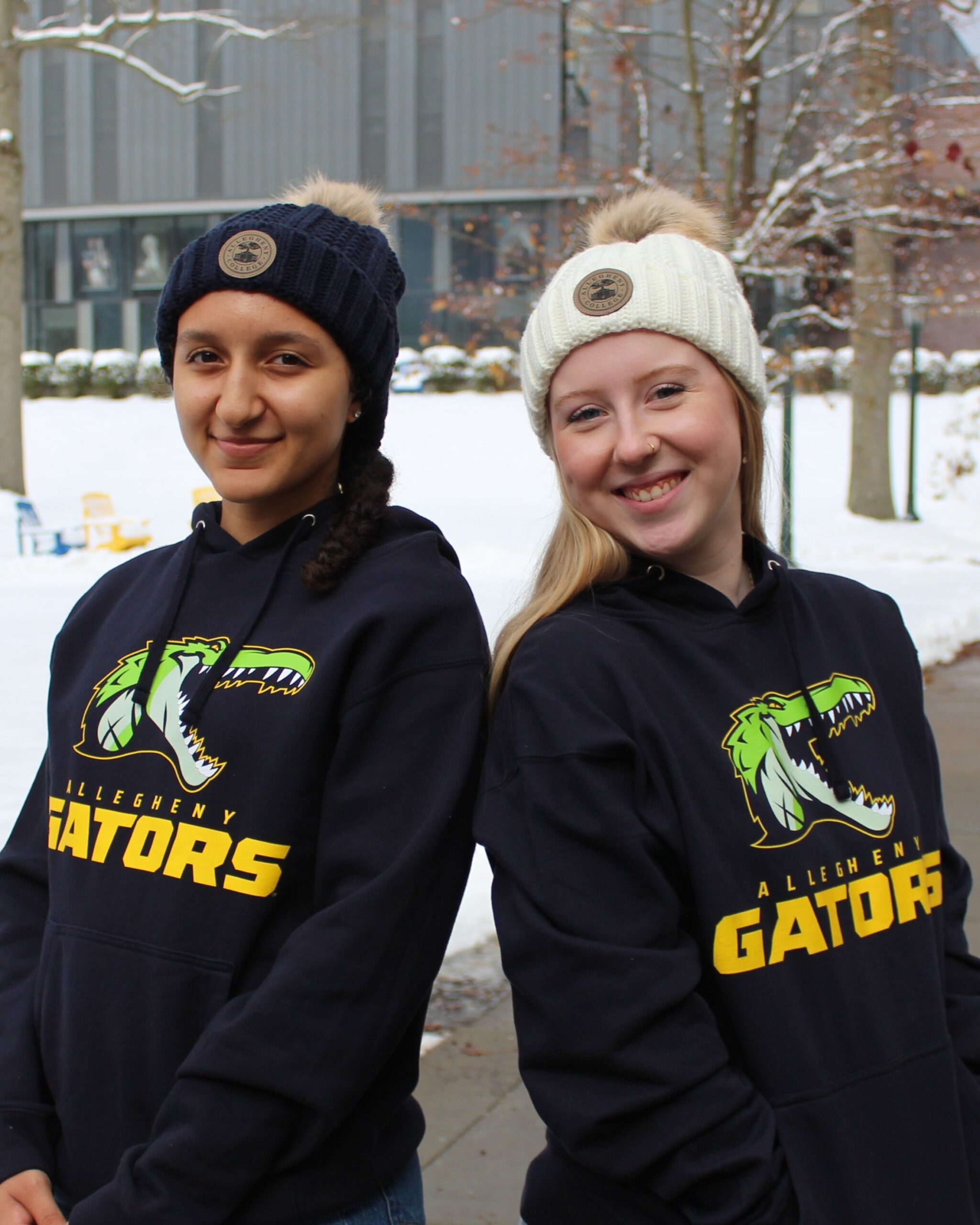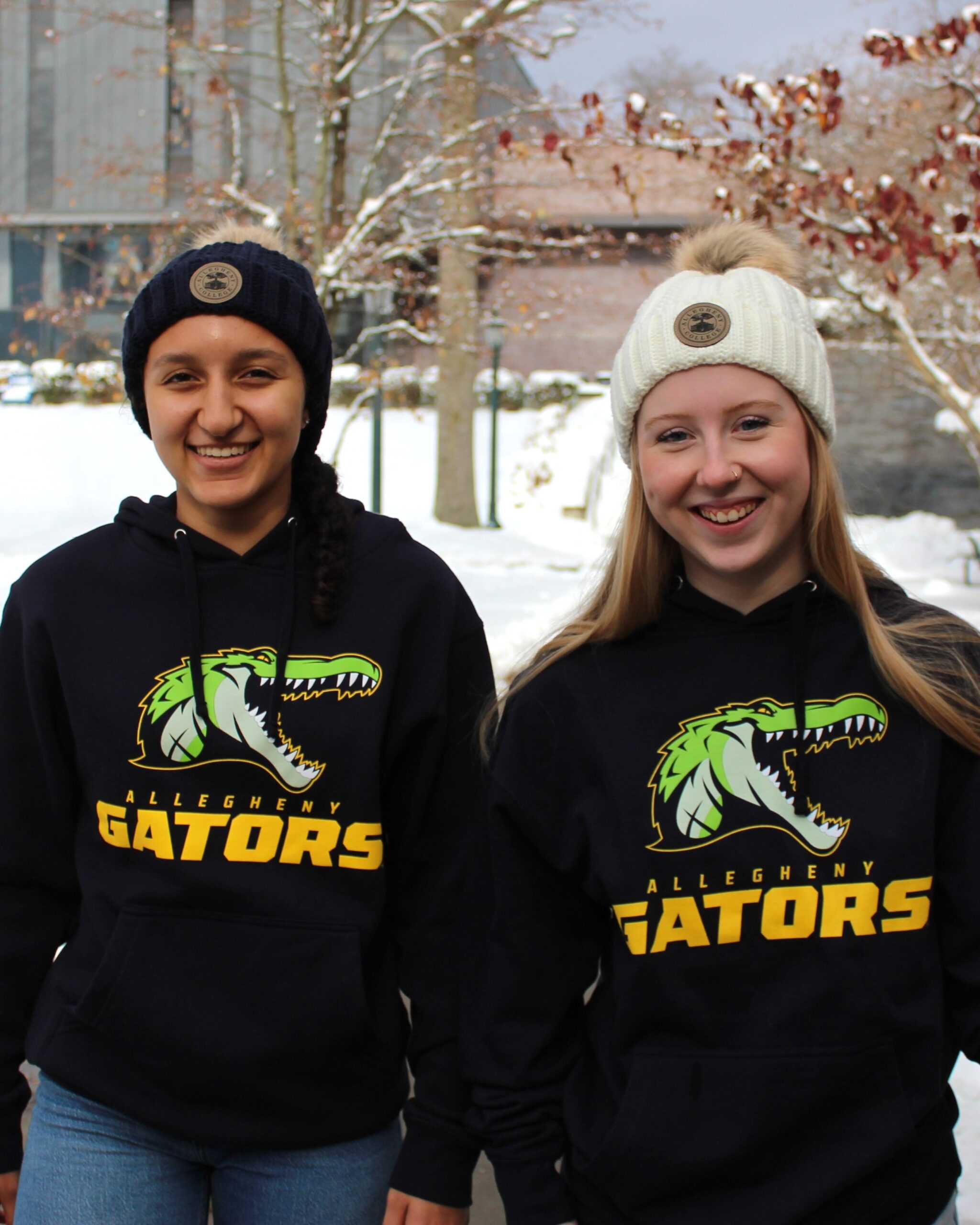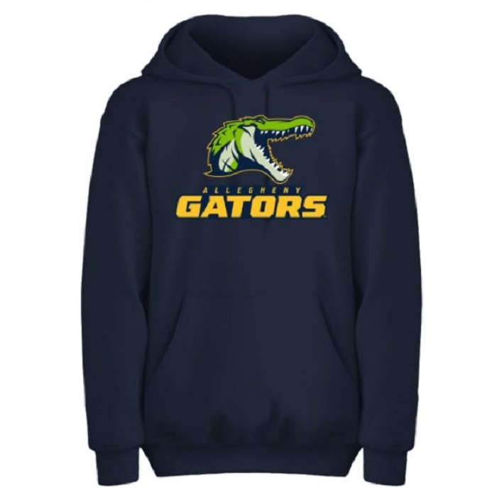 - Navy hooded sweatshirt with large tackle twill applique of the Gator logo.