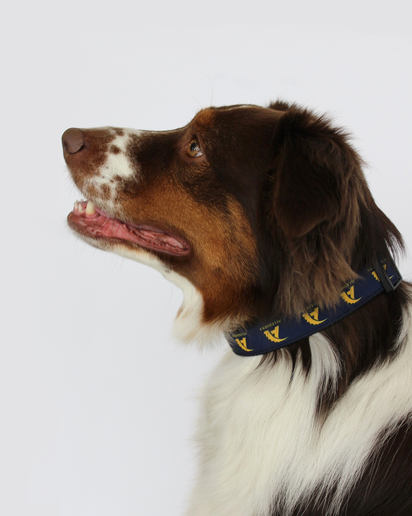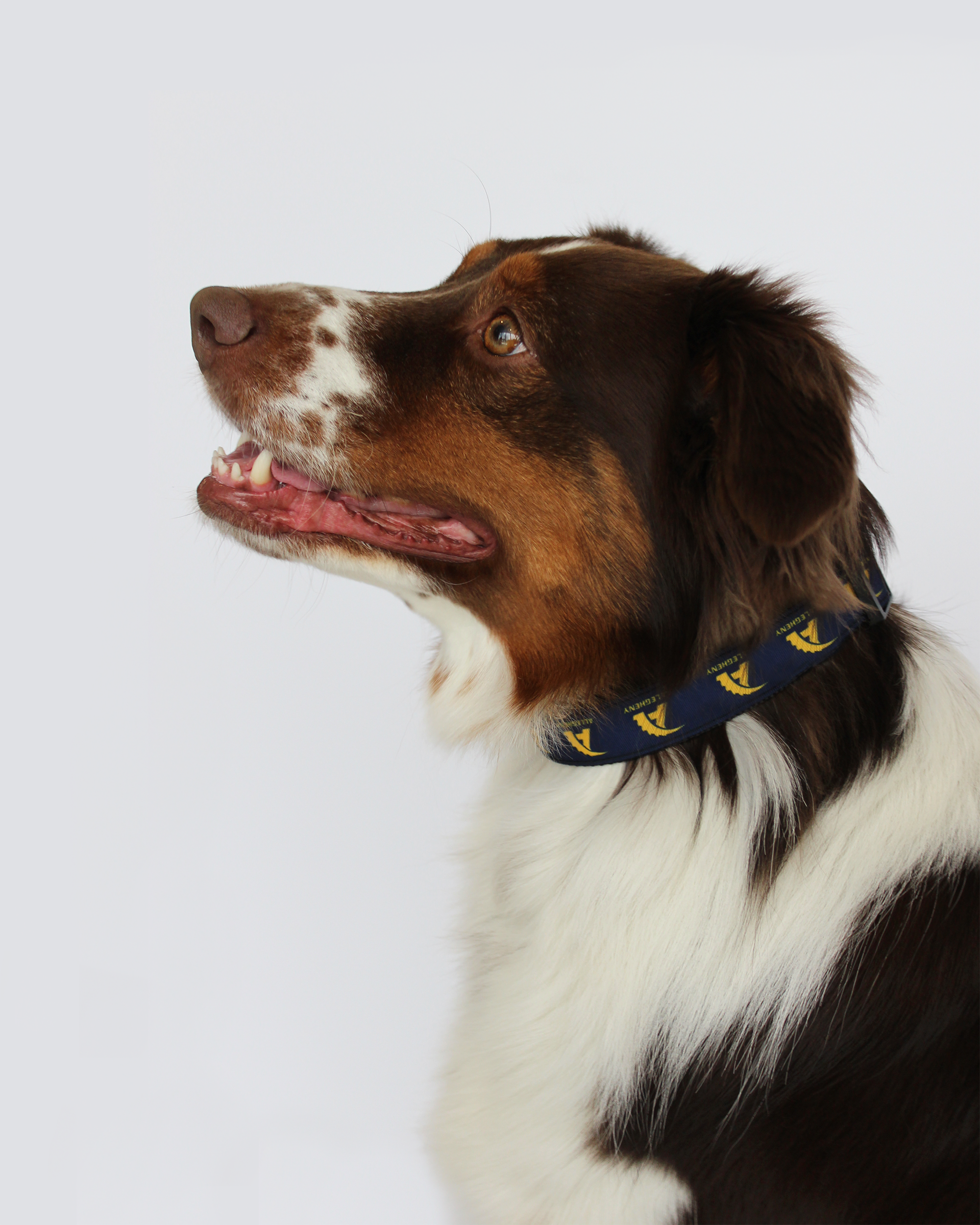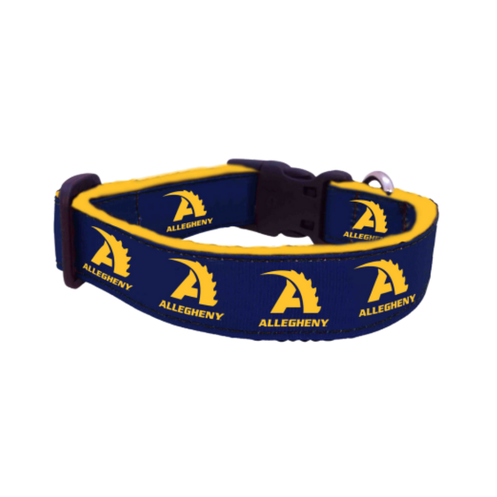 Navy dog collar with gold Action A logo