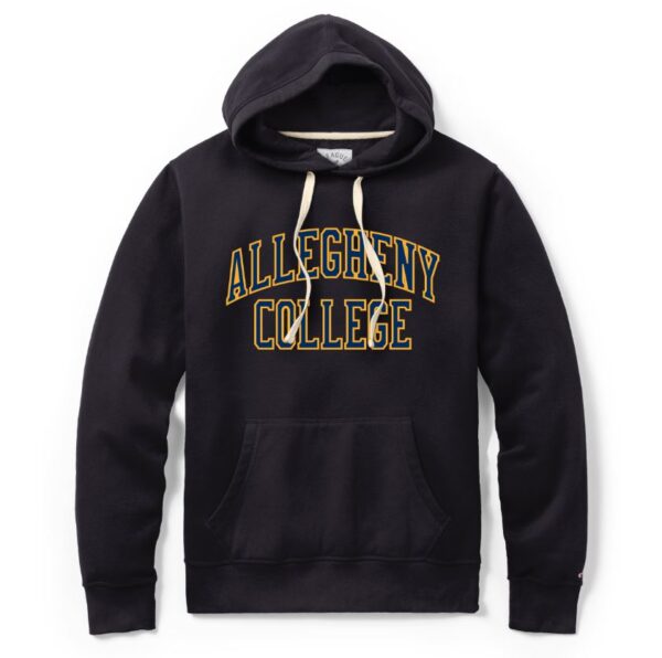 Navy Stadium Hood with embroidered Allegheny College logo text. Unisex sizing, cotton/poly blend. #411257