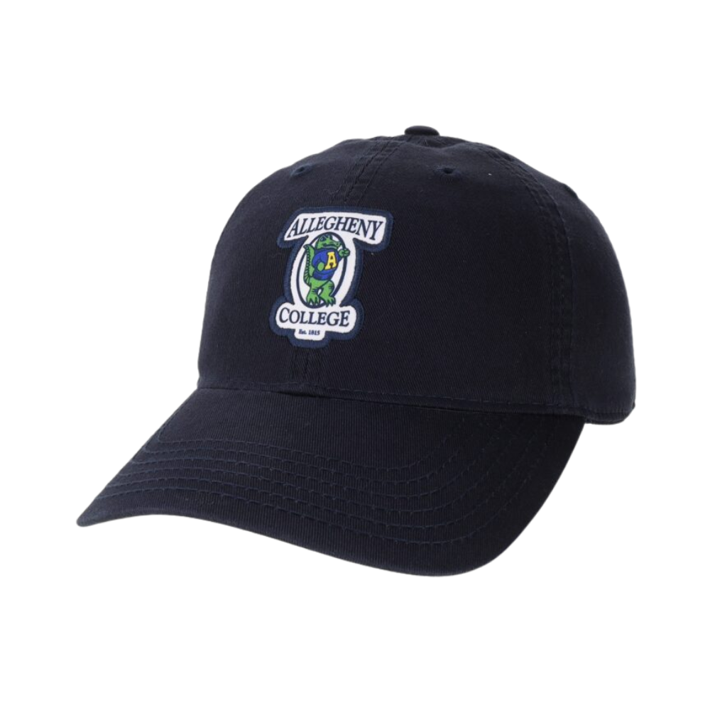 Navy Legacy relaxed twill cap hat with an embroidered Vintage Gator logo patch. Adjustable strap, visor made from recycled content.