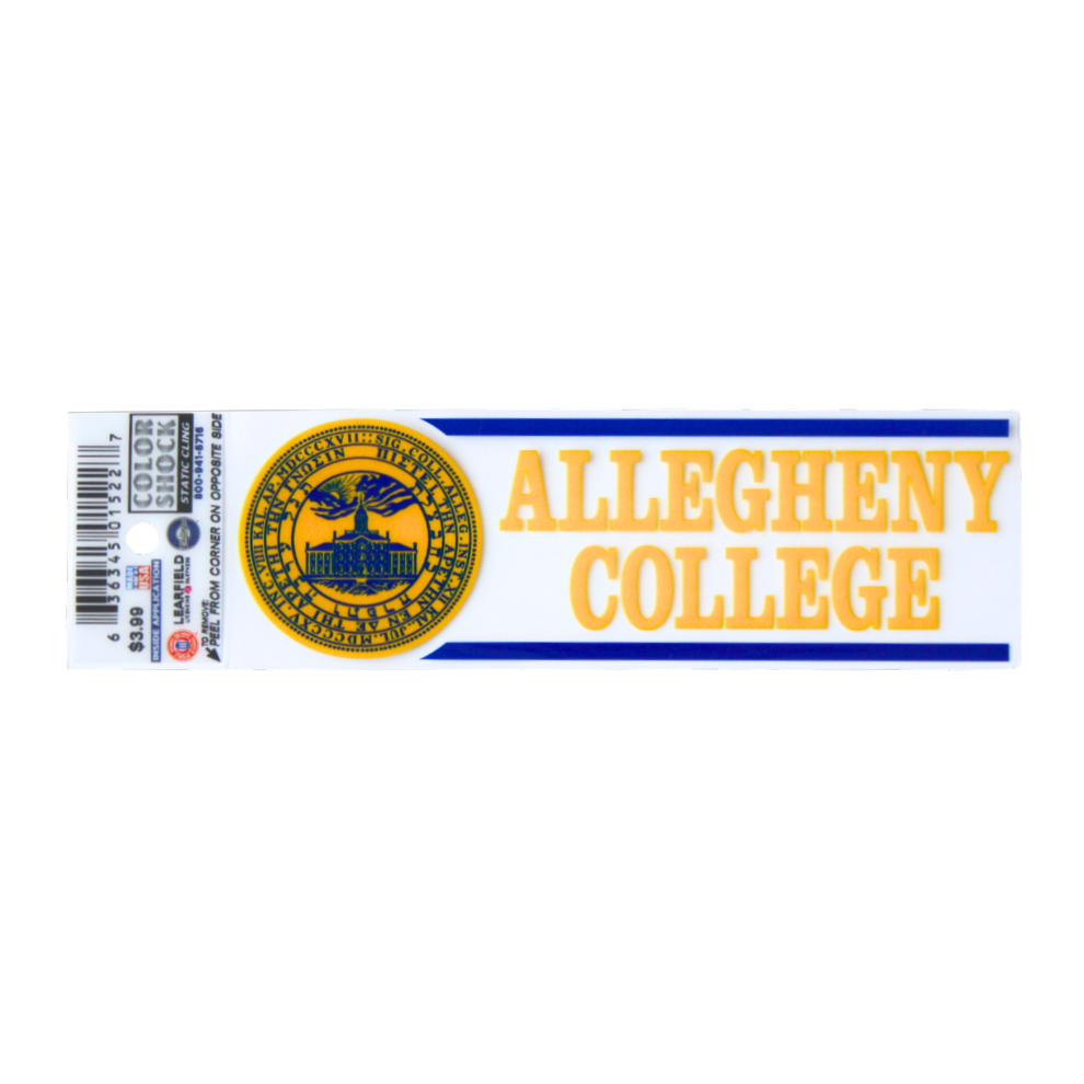 Static cling sticker with “Allegheny College” text and official seal.