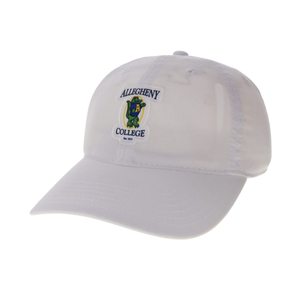 White Legacy relaxed twill cap hat with an embroidered Vintage Gator logo patch. Adjustable strap, visor made from recycled content.