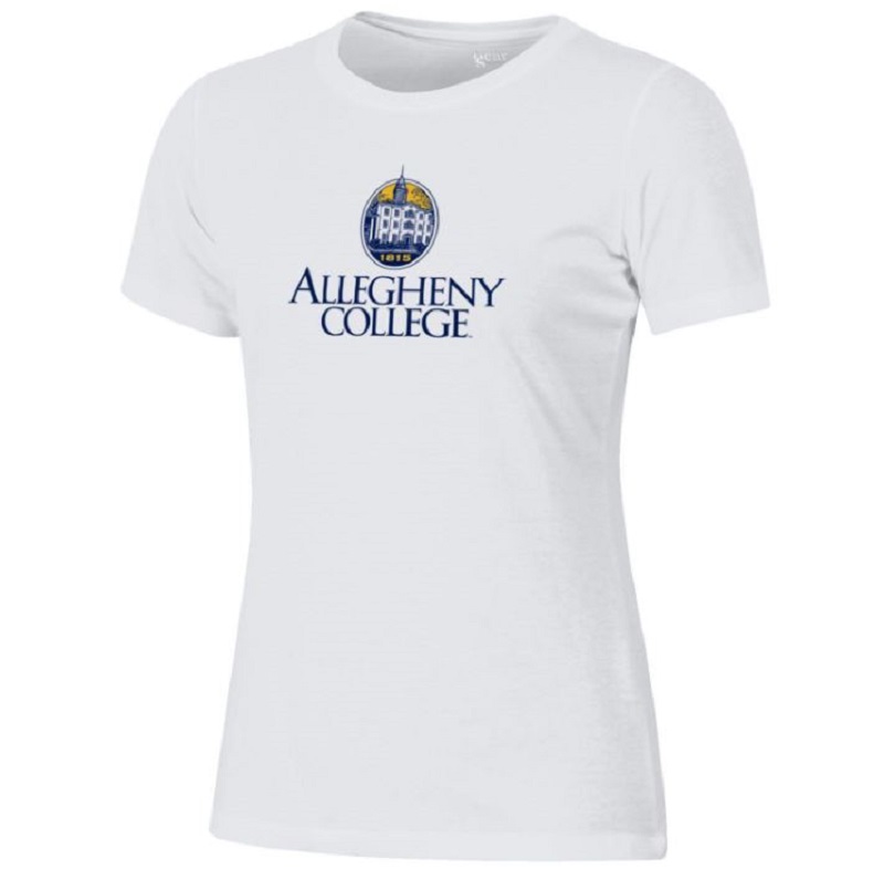 Women’s white Bentley tee with full chest silk screen imprint. Cotton/poly blend. #311240.